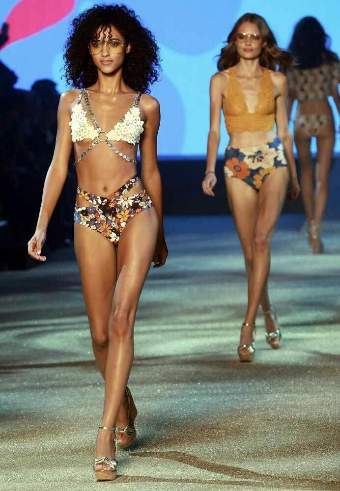La primera estuvo impregnada de sensualidad. El color negro y el encaje de equipos en líneas halter, strapless, deportivos y clásicos, se lucieron en soutienes y culottes, vedetinas y tangas. Todo trabajado también en sensuales transparencias y sinuosos tejidos.