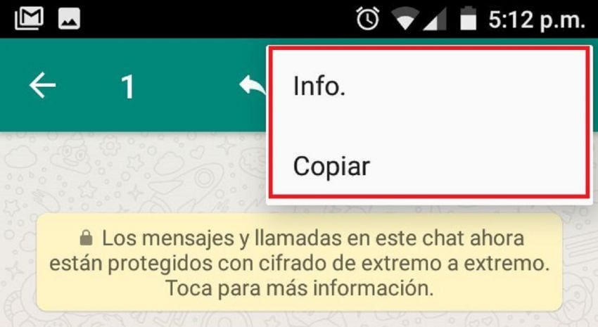 Paso 3: tocar los tres puntos antes indicados y escoger la opción "info". Allí podrás acceder a la hora de entrega y de lectura.
