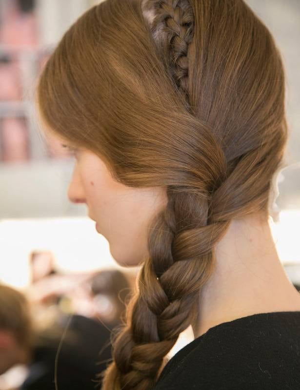 Una trenza ladeada es otra apuesta ganadora. ¿Cómo darle un toque especial? Haciéndola doble, como propone Temperley London.