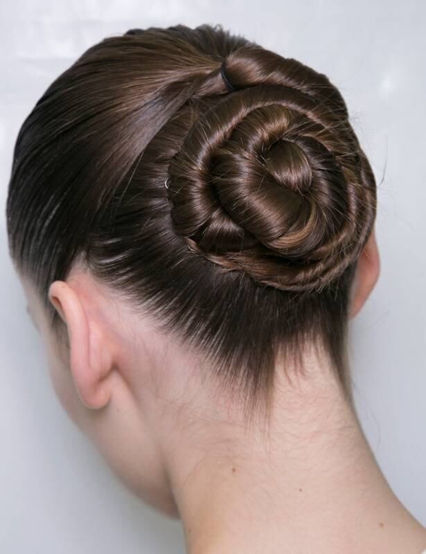 Un moño con mechón retorcido es la propuesta de Issey Miyake. ¿El resultado? un recogido original, sencillo de elaborar y 'minimal'.