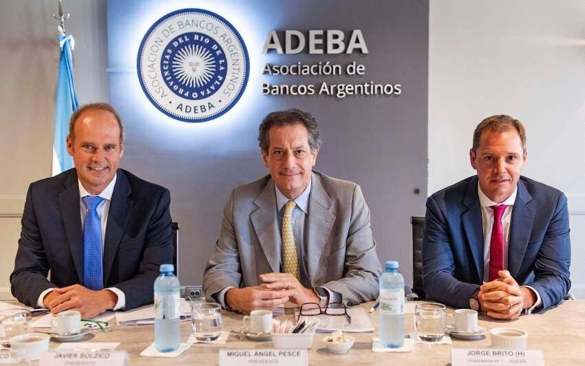 En su visita a Adeba, Pesce estuvo acompañado por Claudio Golonbek, director y Superintendente de Entidades Financieras y Cambiarias del BCRA; y Agustín Torcassi, gerente general del BCRA.