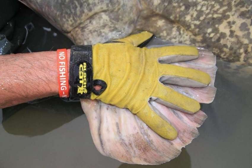 El "pez monstruo" de Italia rompió el récord existente de tamaño de bagres. Después de posar para una fotografía, Benjamin devolvió al animal al agua sano y salvo.