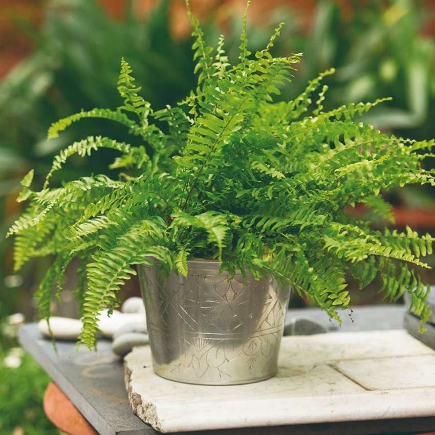 Son plantas empleadas normalmente para arreglos en el interior del hogar, porque no toleran muy bien las condiciones de nuestro clima. Existen más especies para elegir como el helecho macho, helecho espada gigante, (Nephrolepis macho).