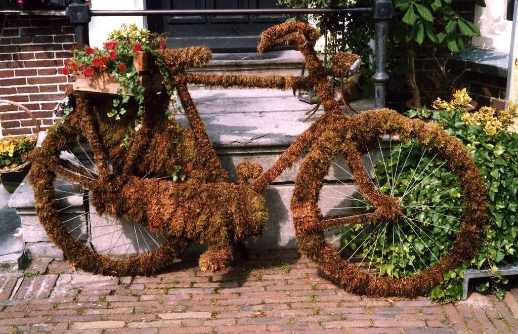 En otros casos, verás bicicletas no propiamente dichas, sino que han sido forjadas en hierro, para imitar una bicicleta. En todo caso, el resultado es tan genial como en los otros.