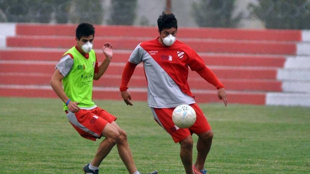 Los jugadores de Independiente de Neuquén, club que participa en el Torneo Federal B del ascenso argentino, tuvieron que entrenar hoy con barbijos por la presencia de cenizas que viene expulsando el volcán Calbuco, de Chile, desde hace algunos días. Al parecer, el plantel ensayará de la misma manera hasta nuevo aviso para evitar enfermedades respiratorias.