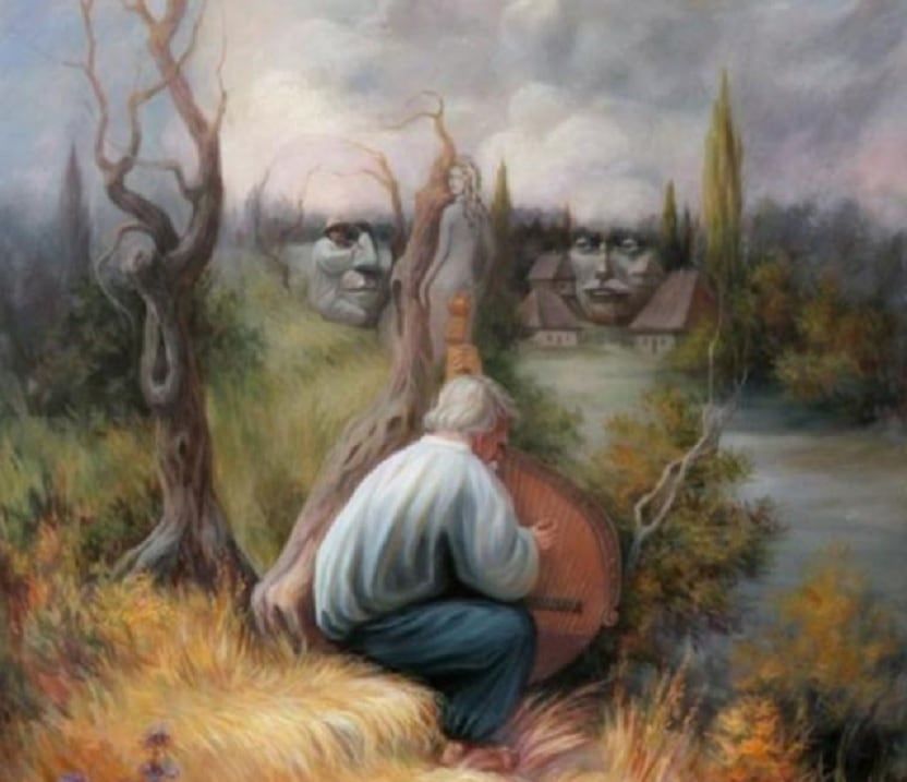 Si el reto anterior te resultó difícil aquí hay uno más sencillo. El objetivo es encontrar a seis personas en la siguiente obra del artista ucraniano Oleg Shupliak. Muchos internautas comentan las posibles soluciones a este acertijo y al mismo tiempo desafían a sus amigos a resolverlo. En esta ocasión, algunas de las figuras humanas se aprecian rápidamente pero otras deben buscarse un poco más.