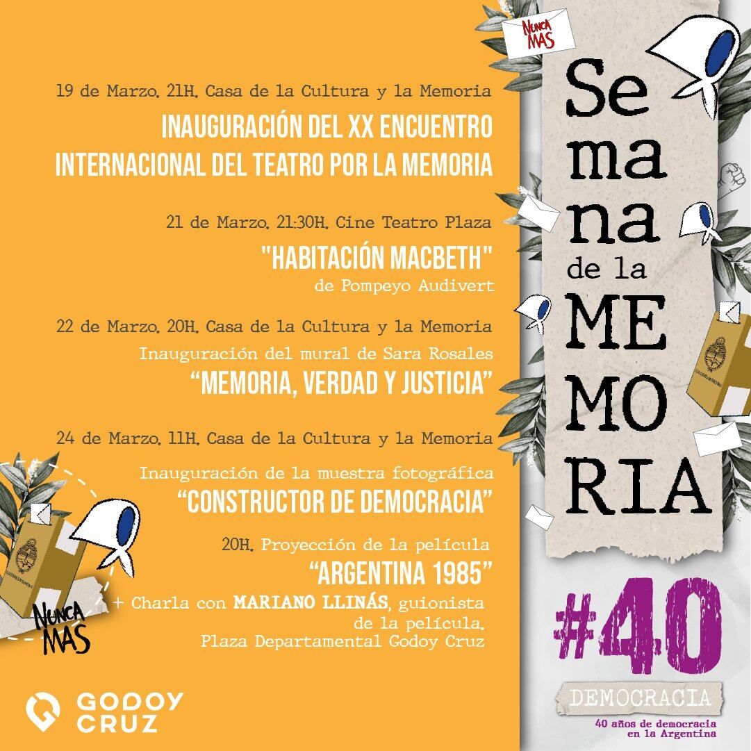 Como sucede hace varios años, la Municipalidad preparó una extensa agenda de manifestaciones culturales. El objetivo es resaltar la memoria, la justicia y los derechos humanos para reflexionar sobre los hechos trágicos sucedidos entre 1976 y 1983.