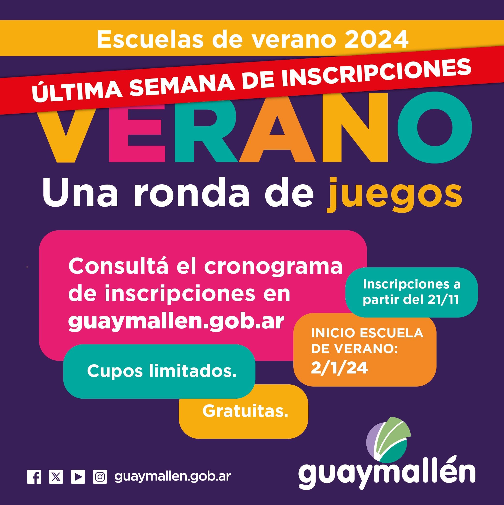 Hasta el jueves 7 de diciembre permanecerán abiertas las inscripciones para la temporada 2024 de las escuelas de verano de Guaymallén.