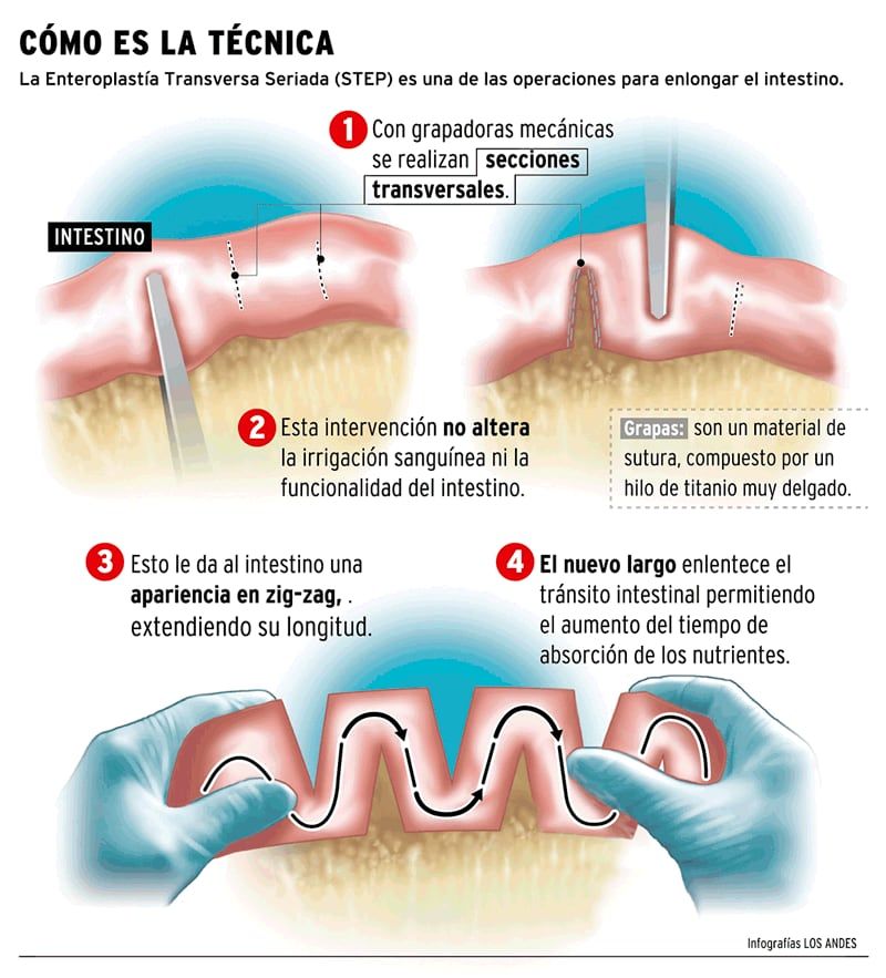 Una de las alternativas para resolver la problemática y evitar la alimentación parenteral de largo plazo es esta cirugía realizada, a la que acceden pocos pacientes porque deben darse ciertas condiciones.