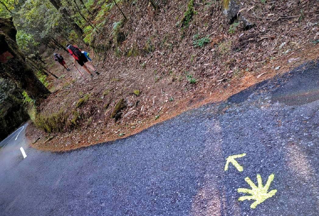 Nos adentramos en un frondoso bosque, aire puro -de ese que no existe en las ciudades- subimos, bajamos, cruzamos un puente y llegamos a otro poblado. Los pies cansados indican que debiéramos estar por llegar a destino. Dos niñas de unos doce años que hacen el Camino junto a sus familias van cantando hits del verano, con un entusiasmo propio de concursantes de algún show televisivo de cazatalentos.