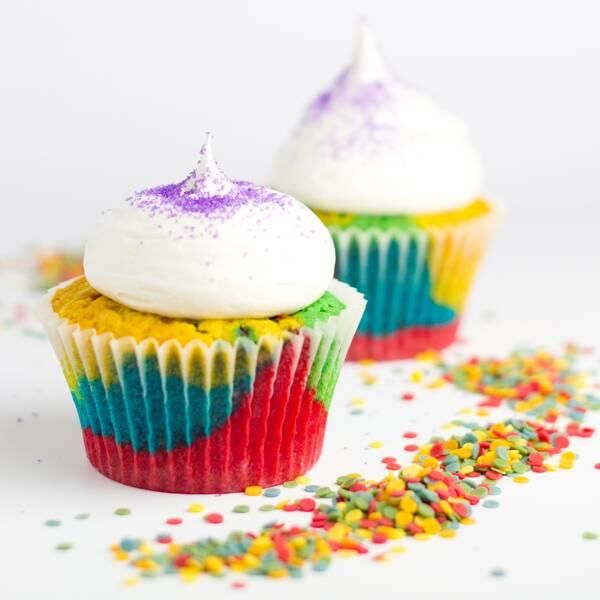 4. Decorar los cupcakes con una boquilla redonda y sprinkles o azúcar coloreada.
