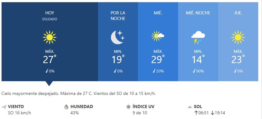 Mañana miércoles volverá el tiempo caluroso, con nubosidad variable e inestable hacia la noche. La máxima rondará los 31 grados.