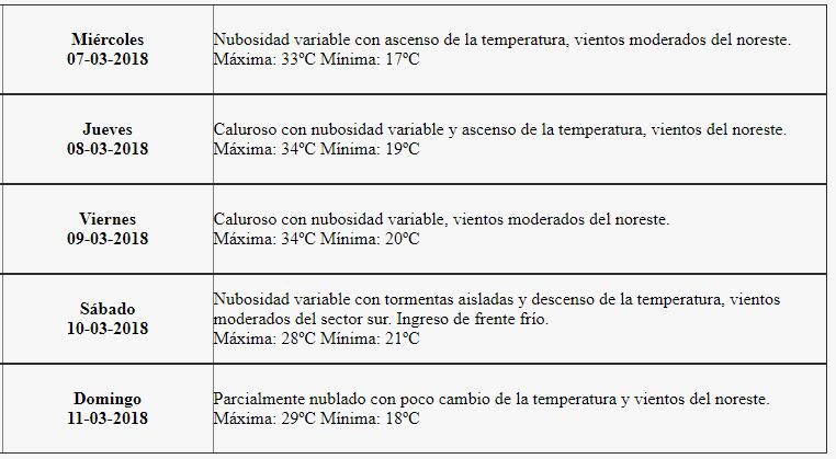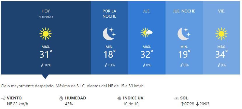 El jueves seguirá aumentando la temperatura, en un día que estará parcialmente nublado, tanto en la mañana como también en la tarde. La máxima prevista es de 32 grados.
