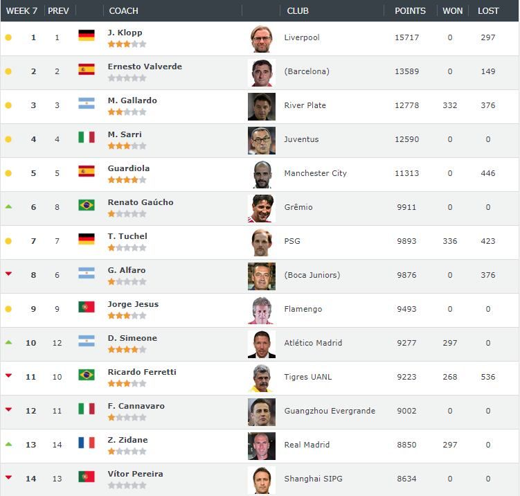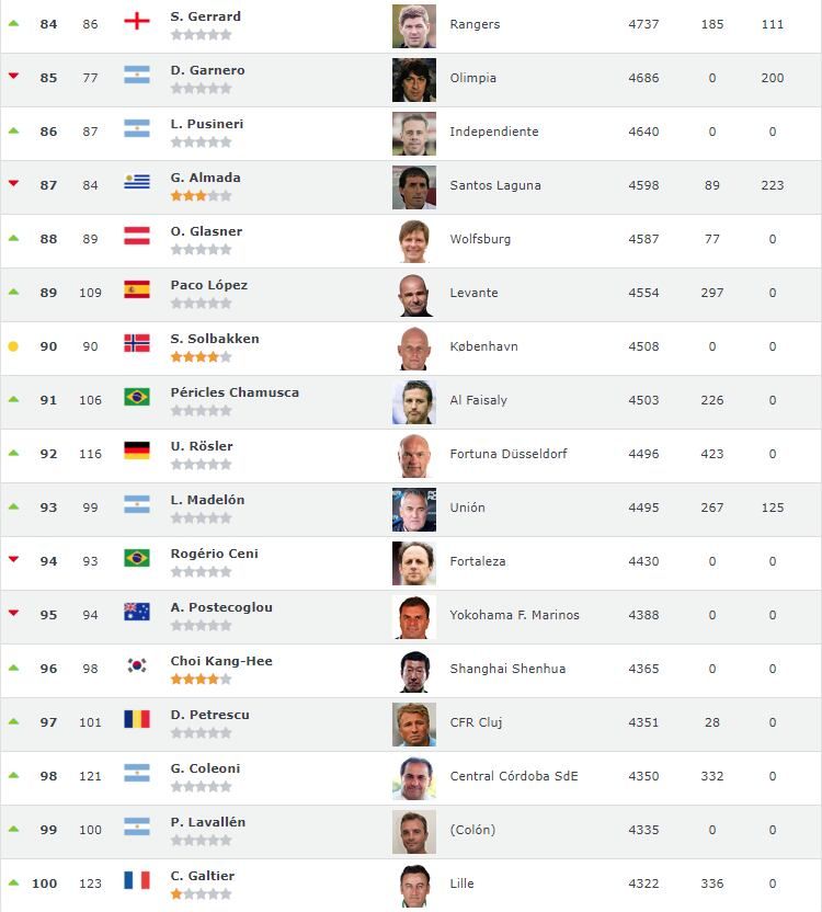 Pero la gran sorpresa es que un luchador del ascenso pudo "colarse" entre los mejores 100 entrendores del mundo: Gustavo Coleoni. El "Sapito", que tuvo un paso por Gimnasia de Mendoza, y que hoy enfrentará a Boca con Central Córdoba de Santiago del Estero figura en el puesto 98.