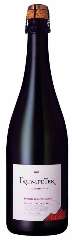 Variedad 100% Malbec de viñedos de Tupungato. Método tradicional, contacto con las borras de 16 meses. 12.7° y azúcar 7 g. Presenta a la vista color salmón con reflejos rojizos y cobre brillante. Sus burbujas son finas y bien definidas desde la base de la copa. En aroma es muy frutado, se destacan frutos rojos maduros como cerezas, frutillas entremezcladas con membrillo y pan tostado. Su sabor es fresco frutado y suave, de gran elegancia y armoniosa estructura que le da el Malbec y posee un final delicado y persistente. Sugerido en góndola $147