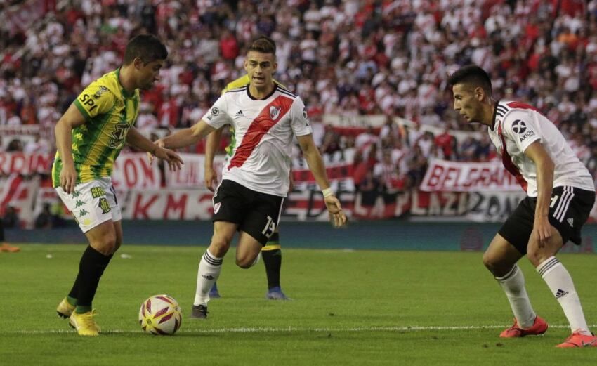 River: Franco Armani; Gonzalo Montiel, Lucas Martínez Quarta, Javier Pinola y Fabrizio Angileri; Enzo Pérez y Bruno Zuculini; Ignacio Fer?adez y Exequiel Palacios; Rafael Santos Borré y Lucas Pratto. DT: Marcelo Gallardo.