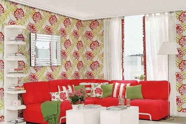 - Combinado con el blanco, el rojo destaca y se hace sublime. En una habitación de paredes blancas, la elección de un sofá, de un cuadro o una alfombra roja aporta a la decoración un dinamismo excelente.
