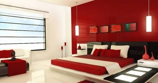 Luminoso: eligiendo un rojo vivo se obtendrá una habitación luminosa porque, como todo color cálido, el rojo absorbe la luz. Optando un tono intenso, como el bermellón o el granate, la luminosidad del espacio se intensificará aún más.