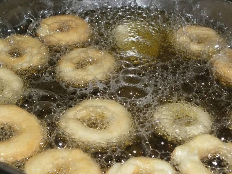 3. En una sartén con aceite, freír las rosquitas hasta que estén doradas.