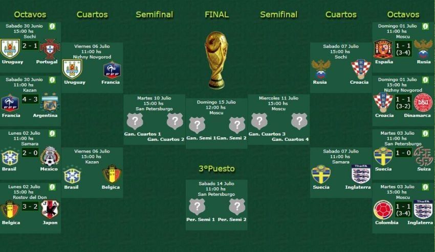 Pasaron los octavos de final de la Copa del Mundo Rusia 2018 y quedaron definidos los cruces de cuartos con partidos tan atractivos como definitorios.