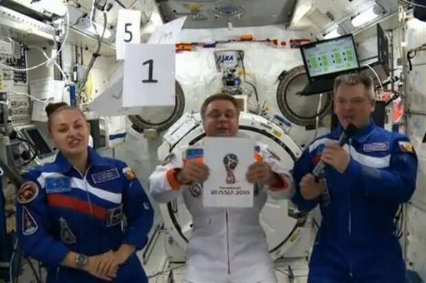 El presidente de la FIFA, Joseph Blatter, reveló el logo con la ayuda de un equipo de cosmonautas.