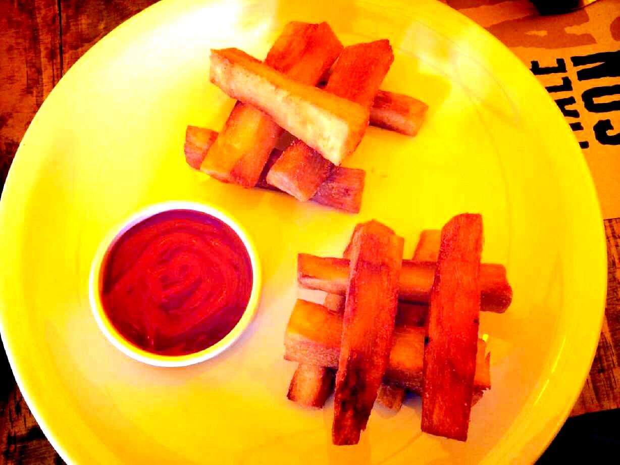 Pelar la mandioca y cortarla en bastones. Freír hasta que tome un color dorado. Agregar sal a gusto y servir caliente.