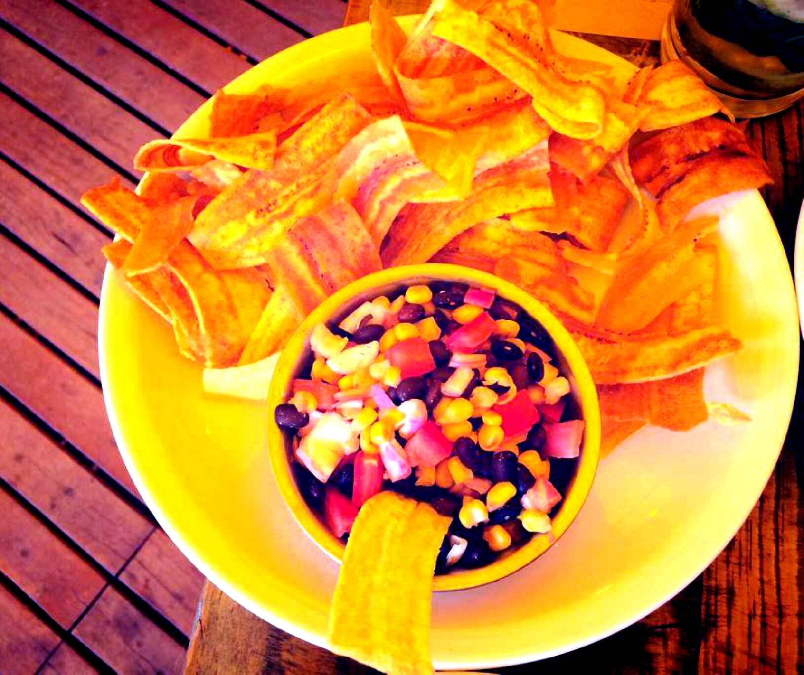 Acompañar con salsa cubana (choclo, ananá, cebolla morada, tomate, porotos negros, jugo de limón, sal pimienta y comino).