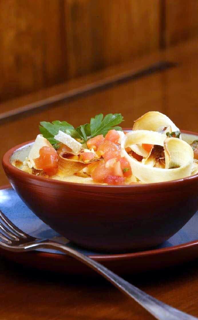A la hora de armar todo se puede hacer individual o en una fuente grande, colocando una base de puré, el relleno y más puré. Colocar al horno por 20 minutos, y a la hora de servir sumar los chips, el queso y gratinar 5 minutos más. Terminar con el tomate en concasse, (pelado y en cubos sin piel ni semillas).