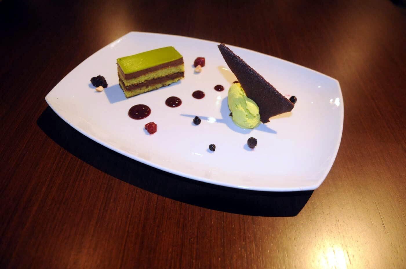 Zuppa Inglese de Pistaccio y chocolate, con helado (del chef pastelero Walter Godoy)