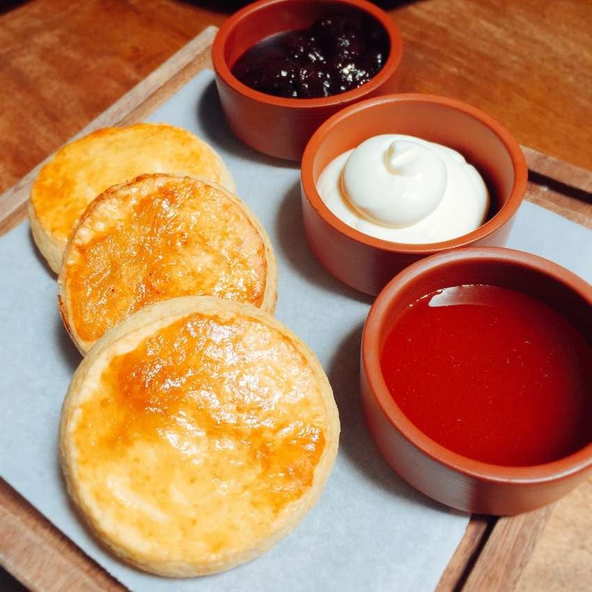 Los scones son unos pancitos de sabor neutro, ni dulces ni salados, cuyo interior conserva algo de humedad aún después de cocinarse en el horno. Ligeramente dorados por encima y de forma redondeada, dejan apreciar -a mitad de altura- una grieta producto de su cocción.