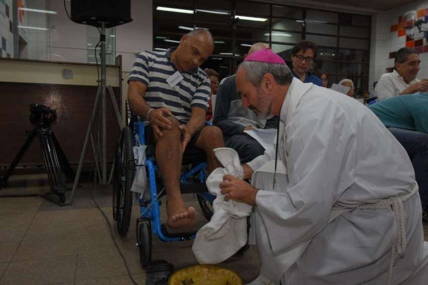 Como cada Jueves Santo, se realizó el tradicional lavado de pies en el hospital Central de la ciudad de Mendoza, que fue presidida por el líder de la religión católica de nuestra provincia, Dante Braida.