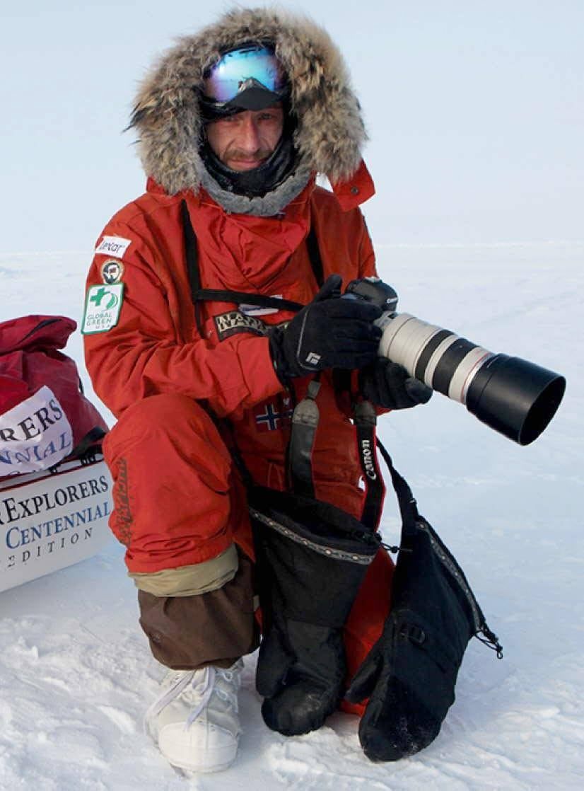 En el currículum, desde hombre alto nacido en abril de 1964, puede leerse en primera línea: fotógrafo, explorador polar, conferencista, autor y activista ambiental. Se graduó en cine, en la UCLA, y en 2010 su documental de aventura “Into the Cold: A Journey of the Soul (En el frío: un viaje del alma”, fue seleccionado en el Indie Spirit Film en la categoría de deportes.