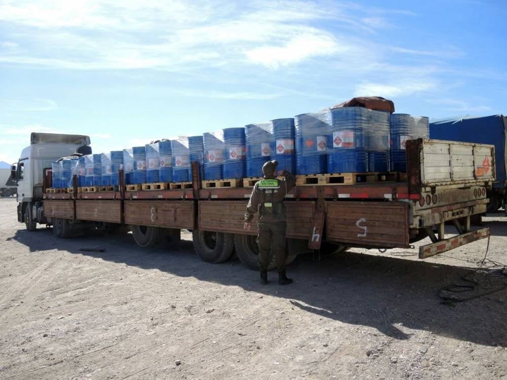 Al momento de realizar la inspección, los uniformados constataron que el cargamento era transportado sin habilitación del Departamento de Fiscalización y Control de Tráfico Ilícito de Precursores Químicos del Ministerio de Seguridad de la Nación.