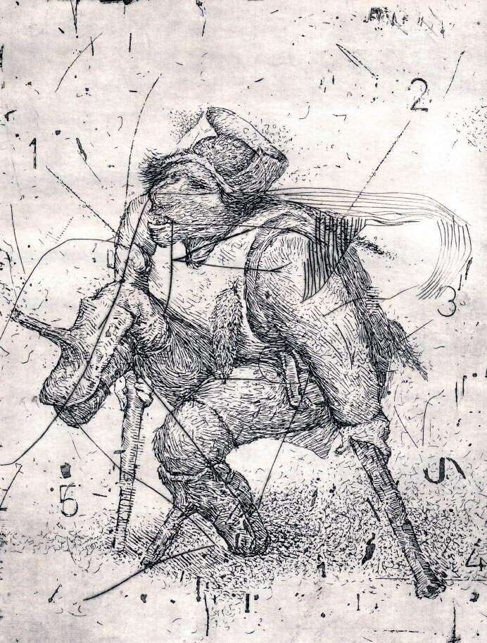 –El dibujo me fue llevando. Sentía que necesitaba abrir mi espectro; a veces ganarse la vida con el dibujo le quita el gusto, uno pierde lo más valioso, el placer de dibujar, como cuando era chico y se olvidaba del mundo con una hoja y un lápiz. En los talleres de grabado encontré un espacio y un tiempo más amplio, intemporal, si querés. El papel, la tinta, la prensa, el aguafuerte, todo eso tiene magia: uno se conecta con una historia más larga, que va hasta Durero y más allá. El grabado modificó notablemente mi dibujo, lo enriqueció mucho.