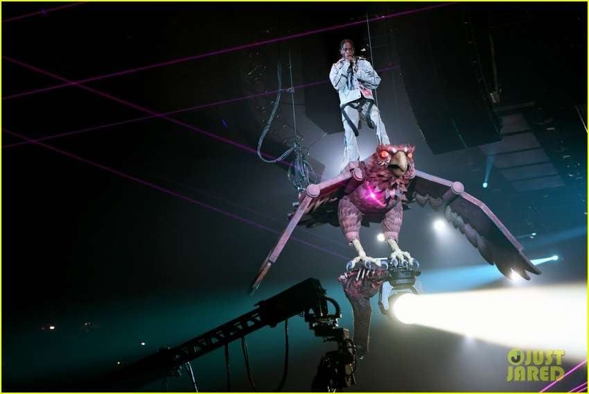 El espectáculo celebrado ayer domingo contó con mucho dspliegue visual. En la canción de Demi Lovato Sorry Not Sorry, el escenario se llenó de 50 bailarines y cuando se escuchó en vivo "Tell me You Love Me" de Travis Scott, apareció una gigantesca "ave fénix animatrónica".