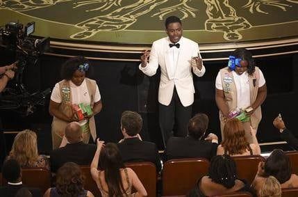 ¡A vender chicas! El anfitrión Chris Rock echó una mano a sus hijas con la venta de galletas de las Girl Scouts desplegando a un equipo de pequeñas por el Teatro Dolby de Los Angeles para vender galletas a las celebridades allí reunidas. ¿Una ventaja injusta por tener un padre famoso? Quizá, pero usted haría lo mismo por su hija si pudiera. Y esas pequeñas emprendedoras consiguieron rápidamente 65.243 dólares por una buena causa.