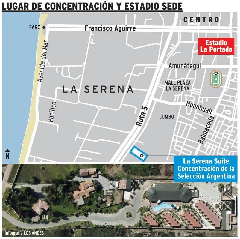 La Selección Argentina de fútbol está concentrada en La Serena y Más Deportes te muestra, en un clarísimo plano, la ubicación y los lugares de referencia de la ciudad costera donde el equipo de Martino se hospedará durante la primera fase.