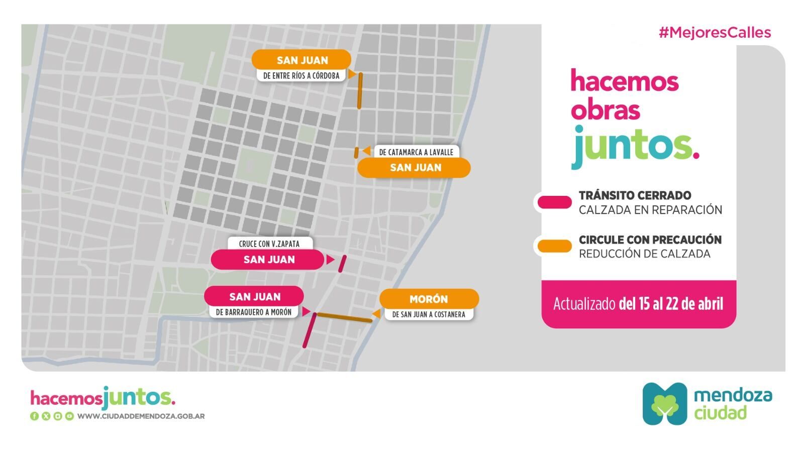 A continuación, el detalle actualizado de las calles con restricciones por obras, del 15 al 22 de abril: