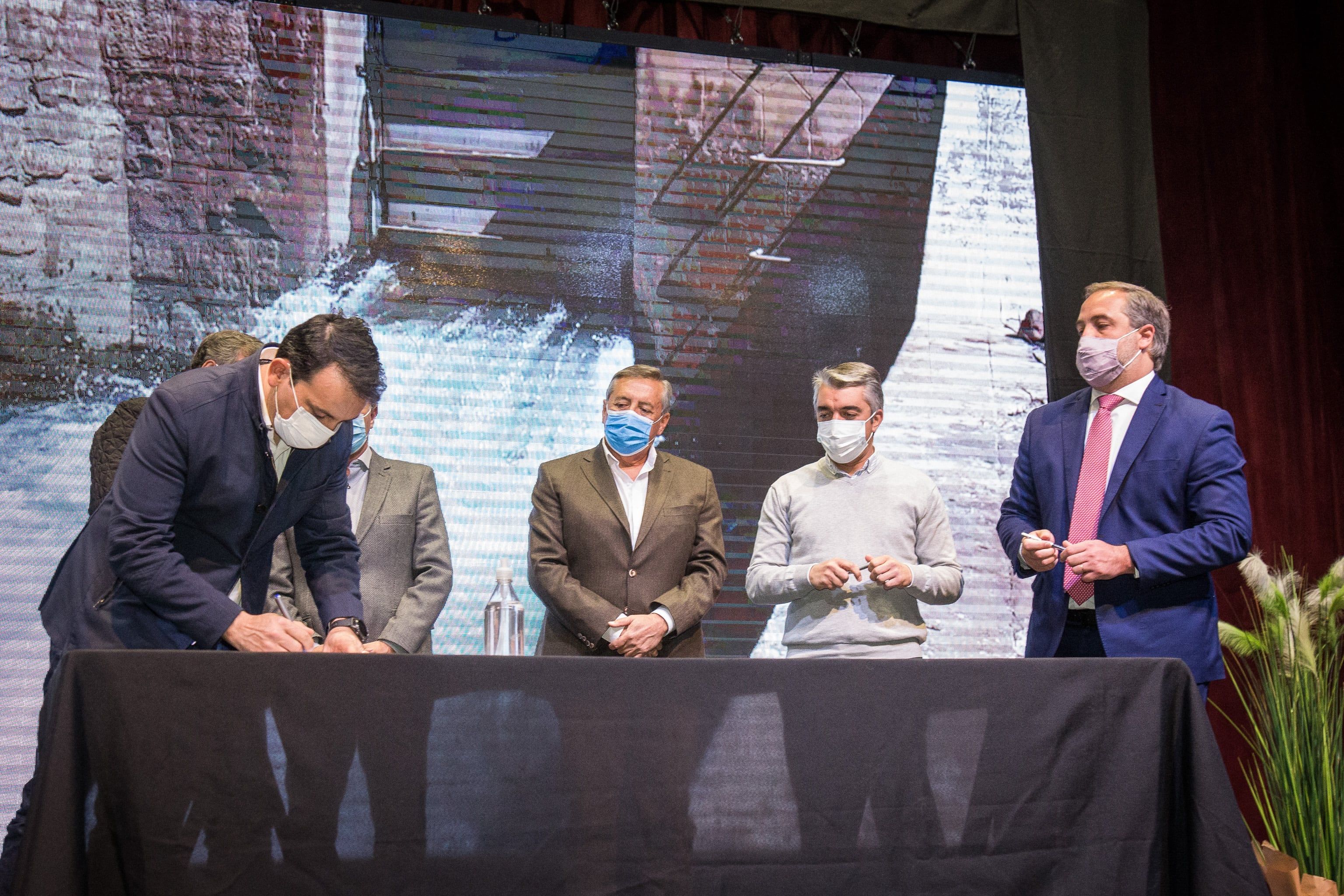 Con la presencia del Gobernador Rodolfo Suarez y los Intendentes de Godoy Cruz, Tadeo García Zalazar; Maipú, Matías Stevanato; Luján, Sebastián Bragagnolo y Las Heras, Daniel Orozco y también del presidente de Aysam, Alejandro Gallego, se rubricaron tres convenios con los que se busca ordenar el uso público del agua que hacen los Municipios a partir de una cartografía detallada de los mismos que permita una mejor gestión tanto de la entrega del recurso, en función de la superficie real bajo riego, como el control administrativo contable de Irrigación.