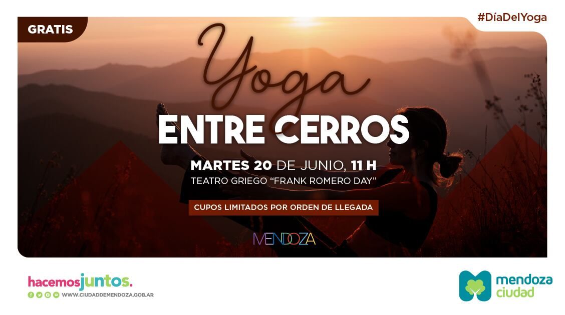 Otra de las propuestas de junio es “Yoga entre cerros” que se realizará de manera gratuita, el día 20 a las 11 en el Teatro Griego Frank Romero Day. En el sitio oficial de la muni se brindarán más detalles de ésta y de cada iniciativa a desarrollarse.