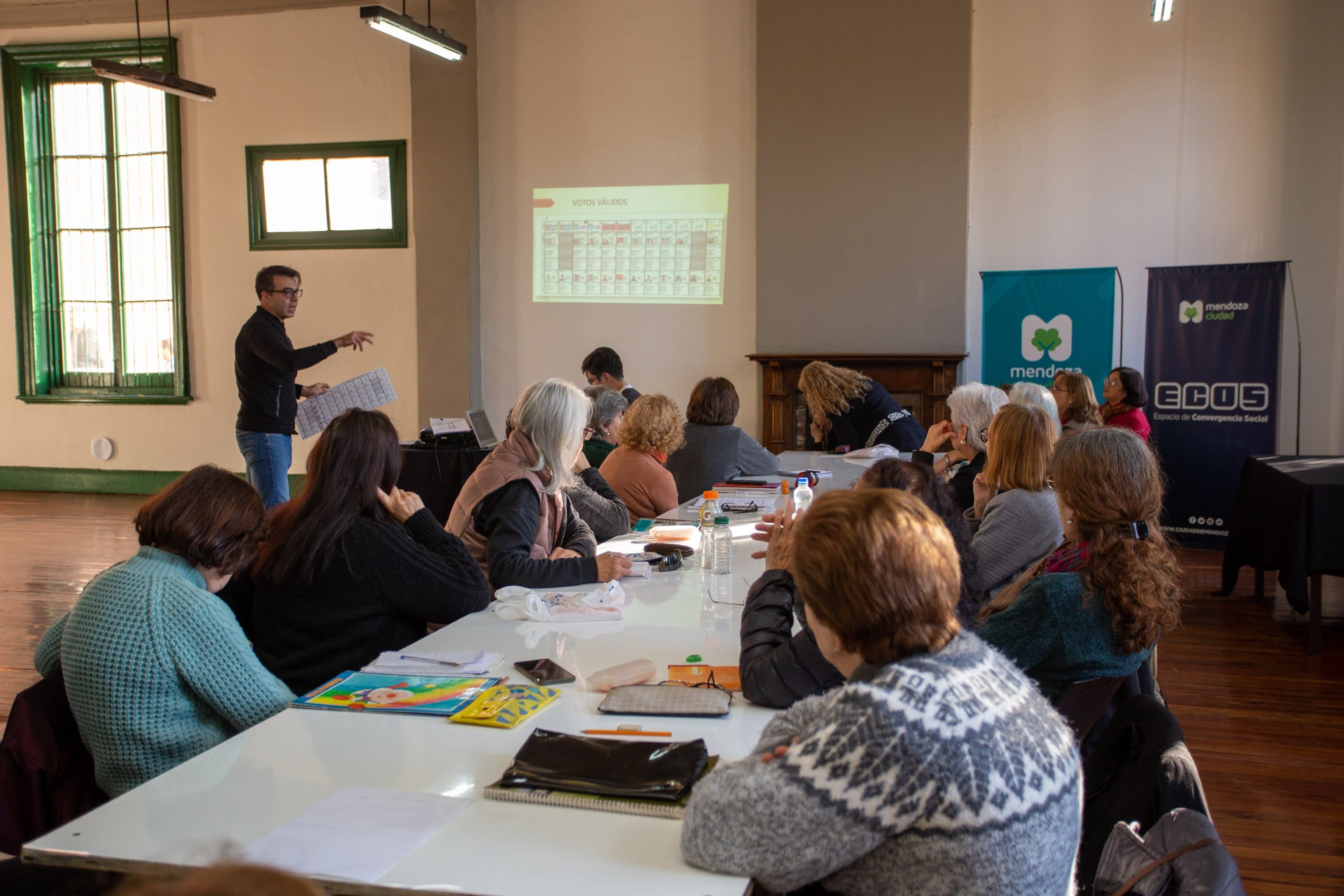 Unas 20 personas que participan del centro de jubilados Gimnasia Feliz fueron capacitadas en boleta única por la Ciudad. El taller se dictó en el espacio ECoS de capital, con la compañía del intendente, Ulpiano Suarez.