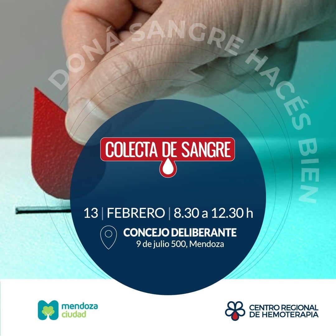 El Honorable Concejo Deliberante, junto al Centro Regional de Hemoterapia, realizará una nueva colecta de sangre en el SUM de la casa de las leyes de la Ciudad. La misma se desarrollará el lunes 13 de febrero de 8.30 a 12.30.