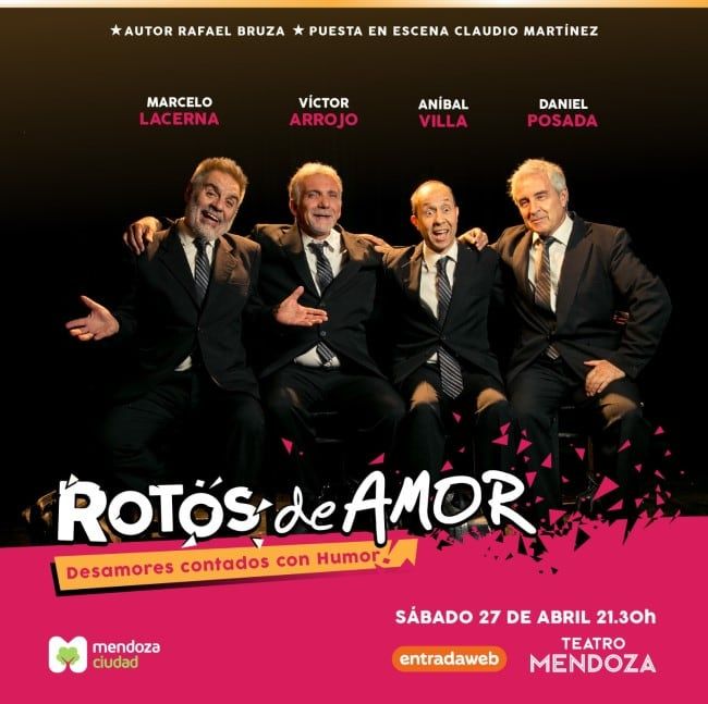 Por otra parte, “Rotos de amor”, relata la vida de cuatro hombres que se enfrentan a una ruptura amorosa, pero en vez de reaccionar con resentimiento hacia su pareja, deciden combatir el desamor con más amor. Para ello planificarán las situaciones más absurdas y cómicas con el fin de reconquistar el corazón de sus respectivas amadas. Estos hombres, además, están dispuestos a buscar cualquier posibilidad para recuperar el amor perdido. Y en el devenir de esa búsqueda aparecen las preguntas sin respuestas de todos los enamorados: ¿en qué se convierte el amor luego de años de convivencia?, ¿cada uno ama como quiere?, ¿el amor es un acto solitario? La función tendrá lugar el 27 de abril, a las 21.30. Entradas aquí.