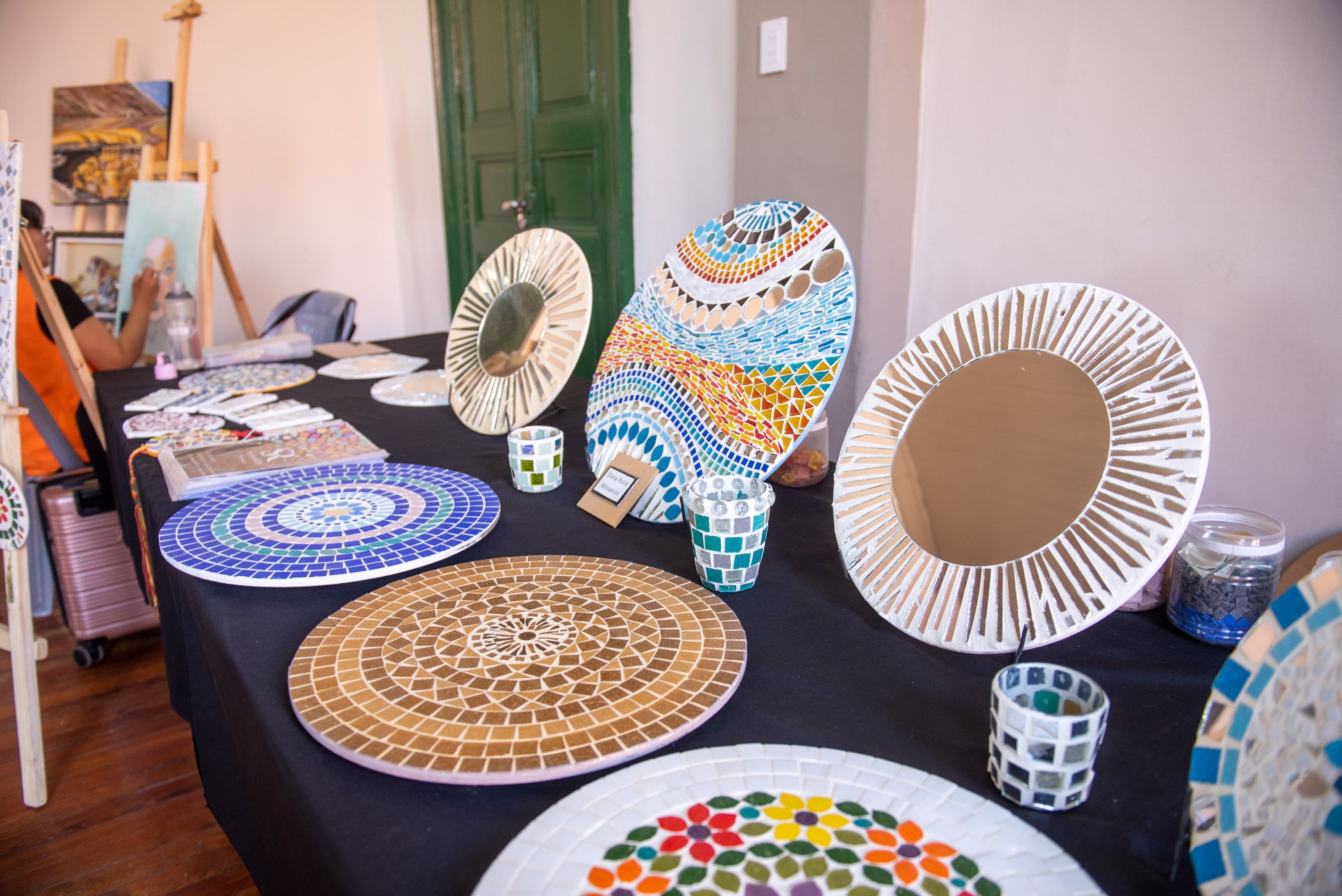 Paralelamente, la especialista en arte terapia Janina Noelia Díaz Castillo y la especialista en arte decorativo, Adriana Castillo, realizaron intervenciones artísticas, irrumpiendo con texturas, colores, realismo y abstracción y mostrando (en el break y al final del evento) sus hermosas piezas para que sean incorporadas en emprendimientos, empresas, talleres y charlas. Mientras que junto a una emprendedora mosaiquista expusieron sus productos para la venta.