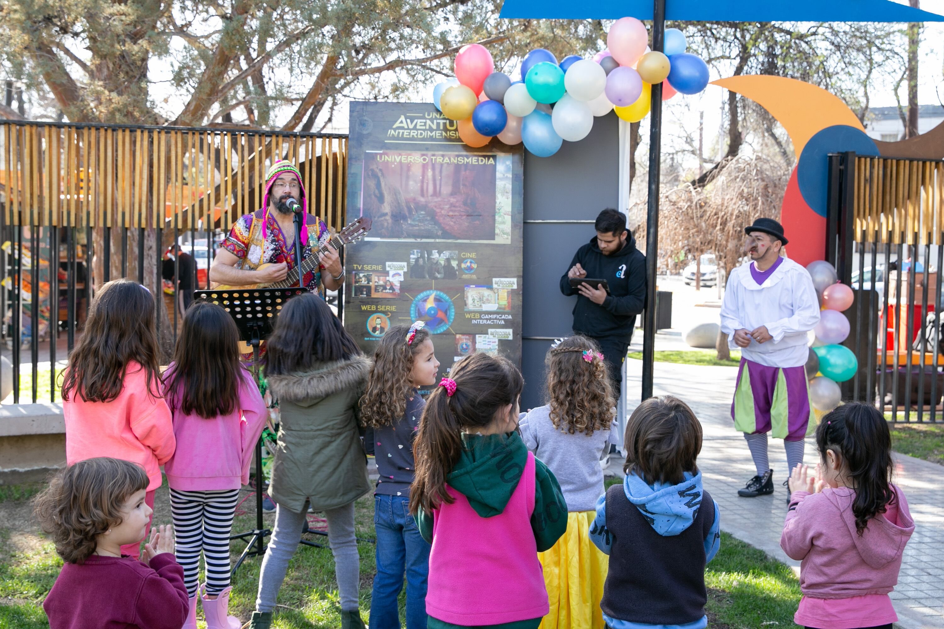 “Se hizo una intervención permanente a través de la transmedia ‘Una aventura interdimensional’, que está compuesta por una película, Bu y Bu, un videojuego educativo que se utiliza en las escuelas primarias de la provincia, y una historieta. Esta nueva expansión narrativa que hicimos en la plaza propone un recorrido lúdico que motiva a la lectura comprensiva, a la observación y a la movilidad física. Buscamos que los niños y niñas utilicen el celular, algo que ya no se puede evitar, pero de una manera que también los movilice, que no se queden frente a una pantalla sino que también estén en el espacio público, en una plaza y que puedan hacer una búsqueda de pistas a partir de algunos textos que aparecen en la aplicación, para que terminen logrando esa movilidad física y una experiencia de juego”, señaló Anahí Barrera, productora de transmedia “Una aventura interdimensional”.