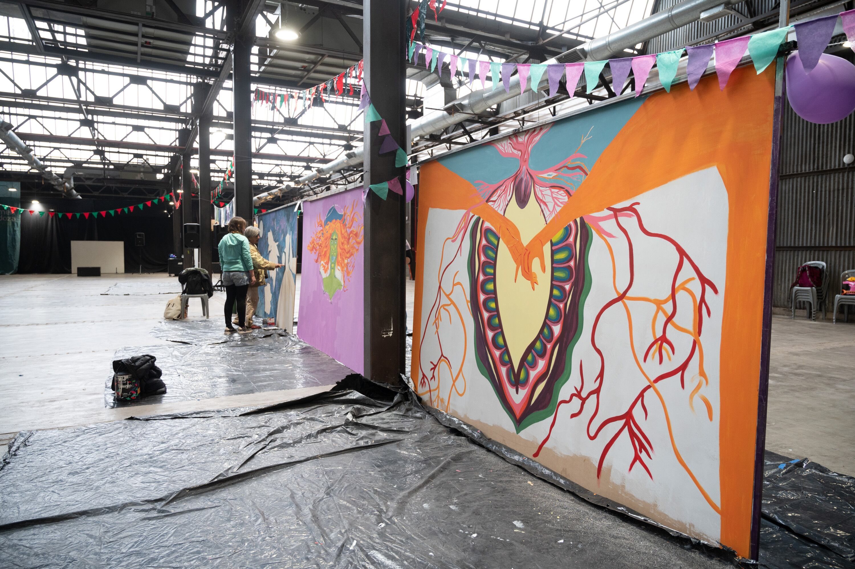 Durante tres días La Báscula recibió a especialistas que estuvieron a cargo de los talleres dictados en relación al oficio. El Primer Encuentro de Mujeres y Diversidades Muralistas en la Nave Cultural logró reunir alrededor de mil personas, quienes sin experiencia -algunas con muy poca- disfrutaron del oficio de mural y arte de manera gratuita.