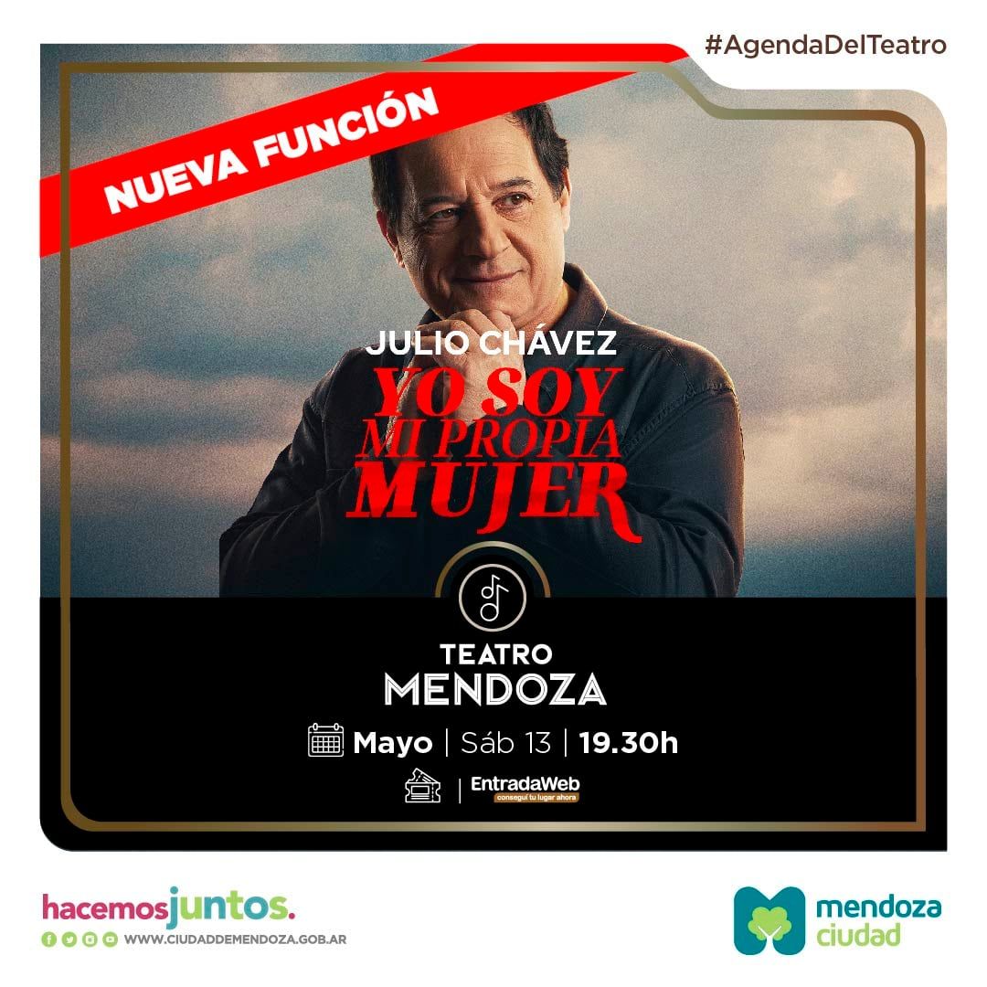 Julio Chávez llega a la Ciudad de Mendoza con su unipersonal “Yo soy mi propia mujer” con presentaciones únicas en la provincia el 12 y 13 de mayo a las 22.