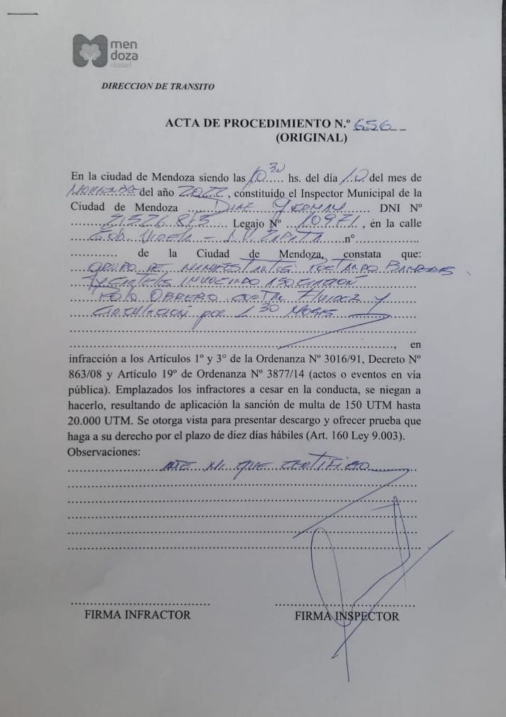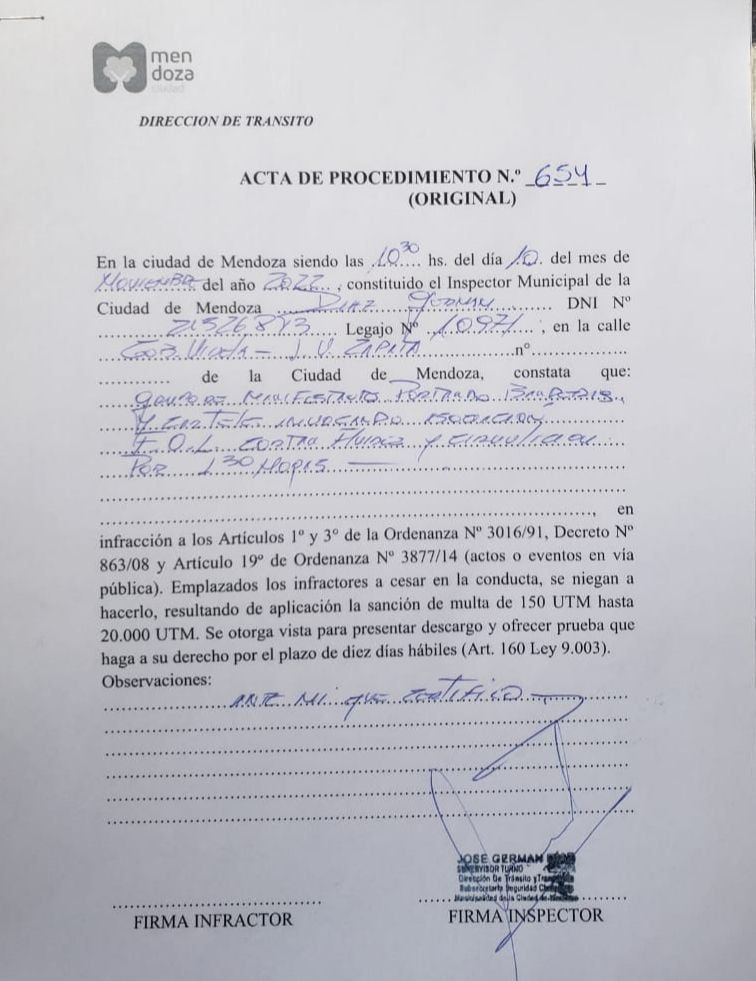 La Municipalidad de la Ciudad de Mendoza debió multar a tres organizaciones sindicales por cortar el tránsito vehicular en el principal ingreso a la Ciudad, la intersección de José Vicente Zapata y Gobernador Videla, durante una hora y media.