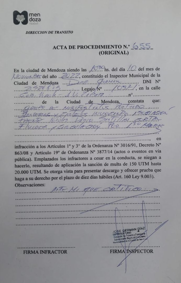 Las infracciones se aplicaron este jueves a las 10, luego de que manifestantes del Polo Obrero, Frente de Organizaciones en Lucha (FOL) y Frente Popular Darío Santillán, violaran el Código de Convivencia y no respondieran al cese de su conducta, pese a la advertencia de los agentes de la Dirección de Tránsito.