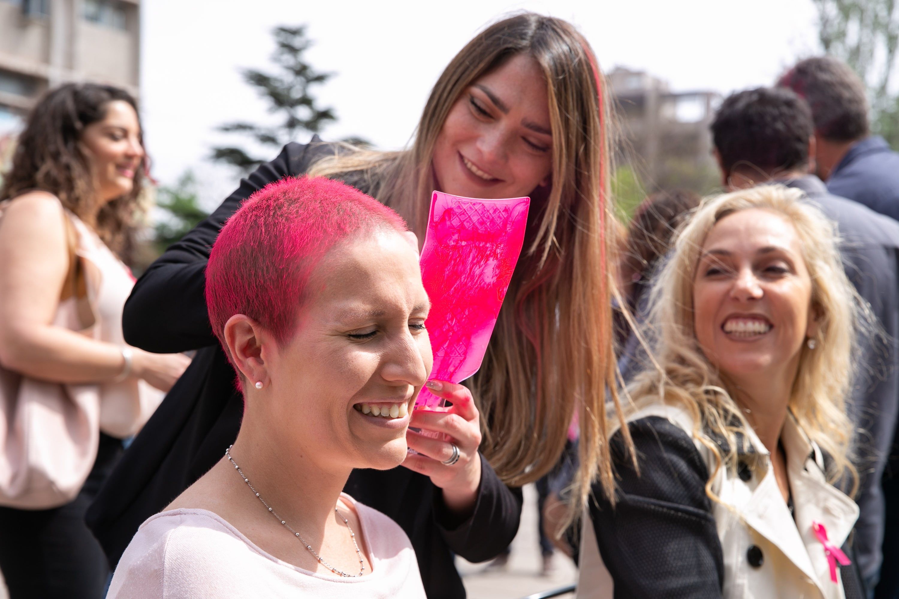 La Ciudad se volvió a teñir de rosa para concientizar sobre el cáncer de mama. La acción fue este lunes y consistió en pintar pelos o barbas rosas y fotografiar a los presentes para visibilizar la importancia de la información y detección precoz.